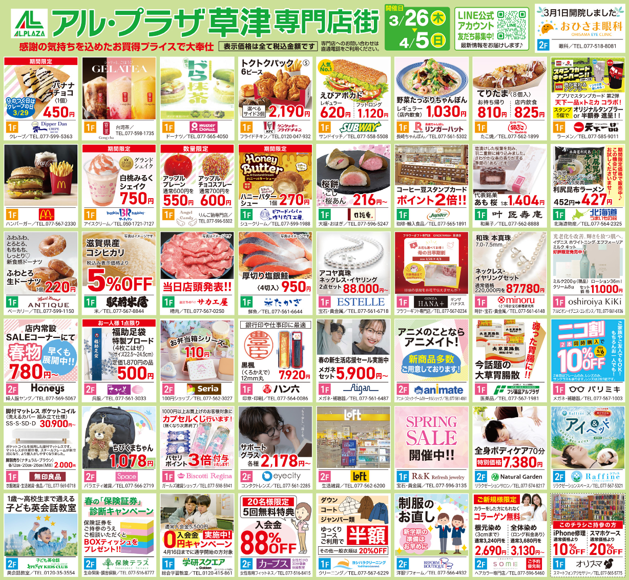 3月26日(木)から4月5日(日)までアル・プラザ草津専門店街におきまして、 エイスクエア30周年祭を開催します。